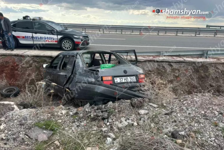 Գյումրի-Երևան ավտոճանապարհին «Volkswagen Vento»-ն դուրս է եկել երթևեկելի գոտուց, բшխվել քարերին և հայտնվել ջրատարում․ կա 5 վիրшվոր